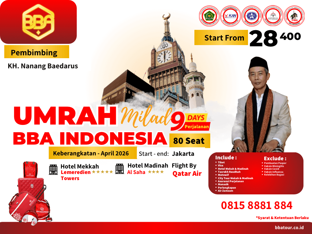 - Pendaftaran Bulan September Rp. 28.400.000/Pax